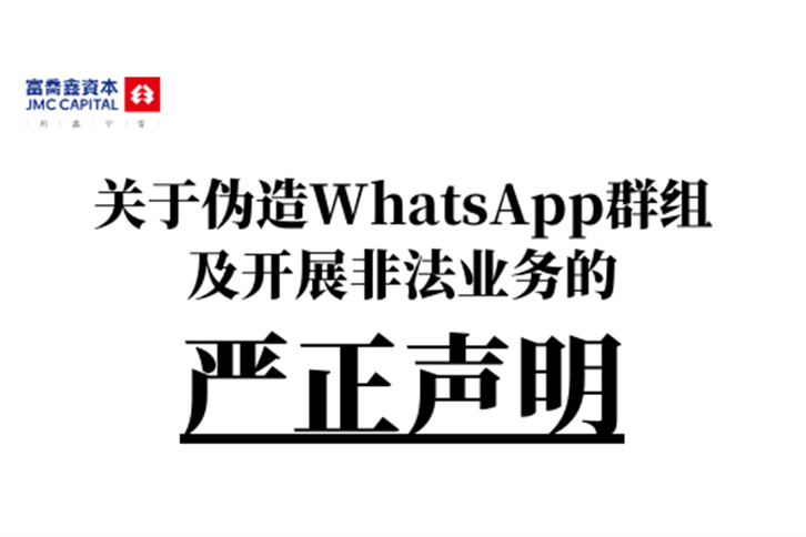 Hereby, we solemnly declare that our company has never entered a brand sharing cooperation with any company, institution or individual to publish corporate promotional videos/articles/investment ideas on the WhatsApp public platform, nor has we provided authorization or recognition services for the brand use of "JMC" and "JMC Capital". Please be aware that we are not affiliated with these fake corporate posters/videos/articles, and we strongly recommend that you do not share any personal or financial information through them or engage in any transactions with them. Any fake online platforms, online groups and Internet platforms that are not officially verified by JMC accounts and remarks are illegal. We have filed an infringement complaint and may take legal measures against the above-mentioned illegal acts.